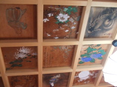 片田稲荷 片田稲荷には、隠れたる画家「野村訥斎」他により描かれた天井画があります。また、別邸で、平賀亀祐画伯の「巴里ガーランド街」(50×60)を見ることが出来ます。 ![]() |