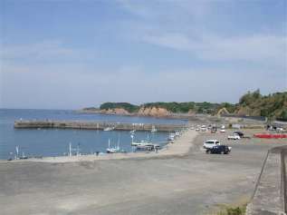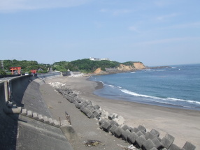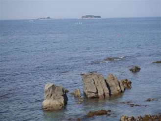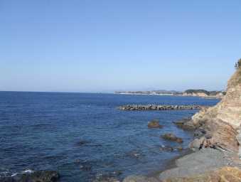 志摩町片田(大野浜) 大王崎を望む。 左に見えるのが片田稲荷 |