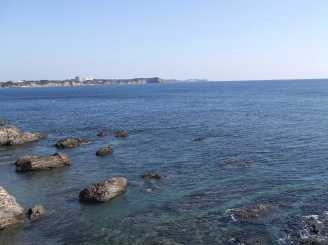 麦崎燈台(片田)より大王崎を望む 天気が良いと富士山が見えると言われています(^^) |